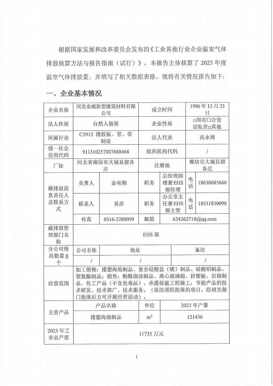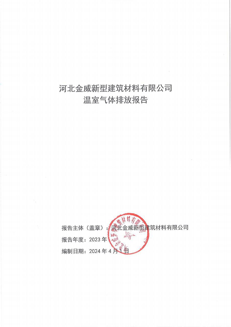 河北金威新型建筑材料有限公司溫室氣體排放報(bào)告