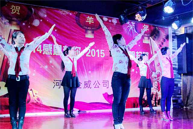 金威廊坊部員工帶來的開場(chǎng)舞——《小蘋果》為年會(huì)表演打開了一個(gè)很好的開端。